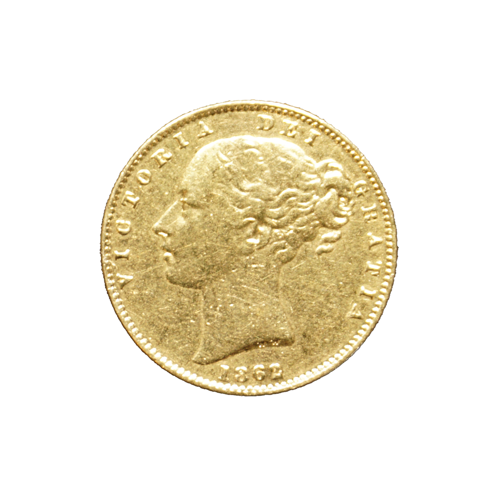 Moeda de ouro original do Reino Unido datada do ano de 1862.