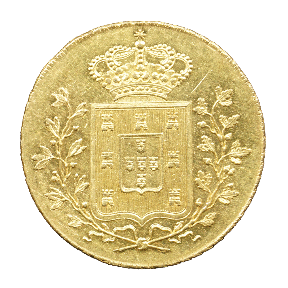 Moeda de ouro original de Portugal datada do ano de 1834.